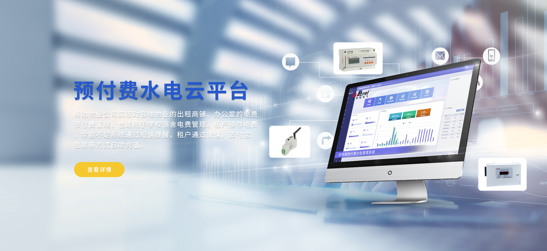 安科瑞提供的解決方案包括Acrel-EIoT能源物聯網云平臺變電所運維云平臺安全用電管理云平臺、環保用電監管云平臺智慧消防云平臺能源管理云平臺、工業企業能源管控平臺、遠程預付費云平臺、餐飲油煙監管云平臺、電動汽車/電瓶車充電樁收費管理云平臺、電力監控/無線測溫系統、電能質量治理系統、電氣火災監控系統、消防設備電源監控系統、防火門監控系統、應急照明和疏散指示系統、智能照明控制系統、醫用隔離電源絕緣監測系統等,幫助用戶實現能源智能化、可視化、精細化管理,提高用能效率和用能安全,為企業節能降耗和實現能源數字化建設提供數據服務。